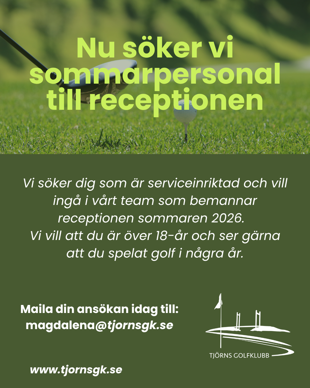 Skicka in ditt CV och din ansökan till magdalena@tjornsgk.se